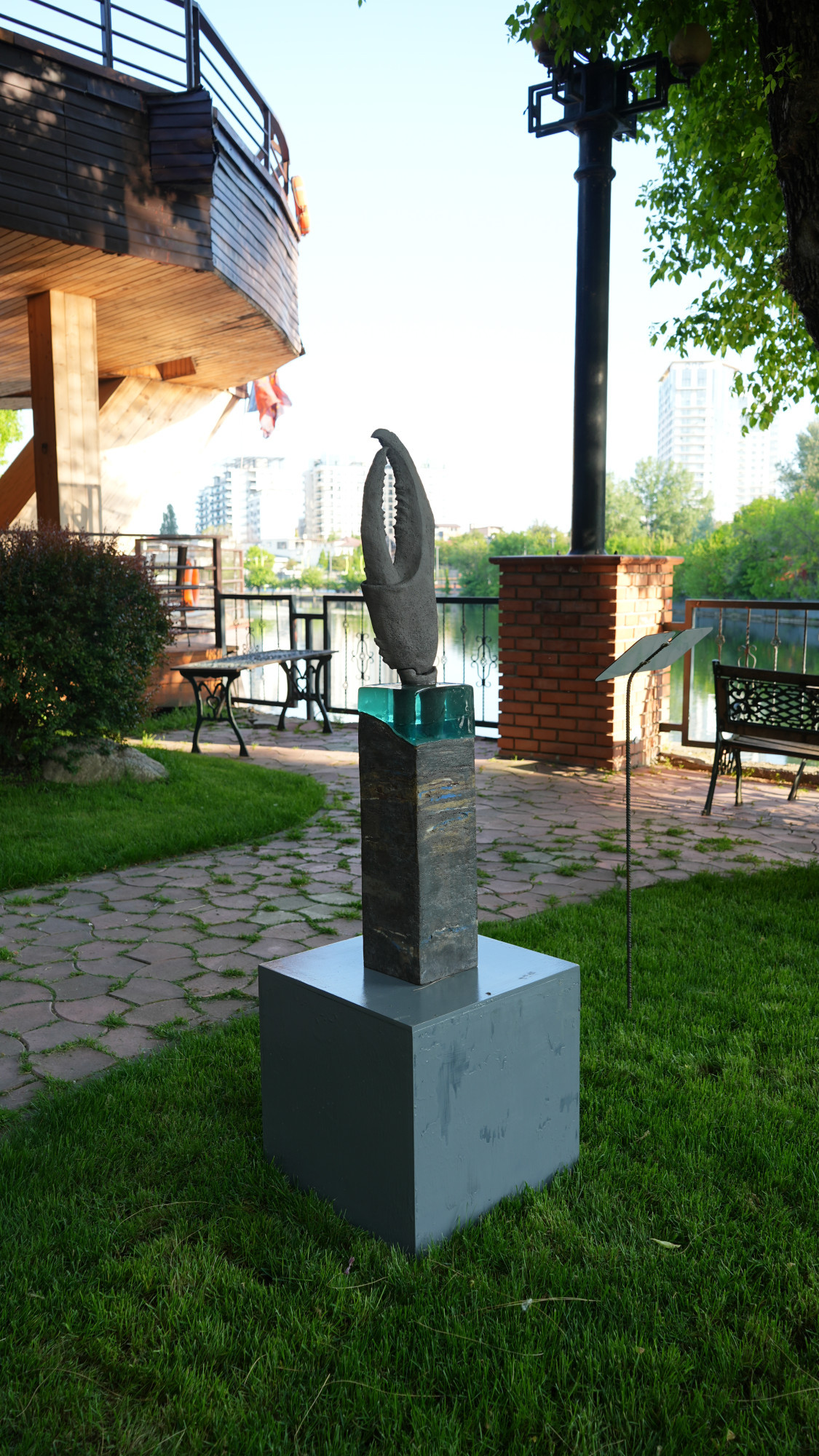 The work is symbolic and narrative at the same time, the raising claw of a water creature stands for life, continuity and happiness.