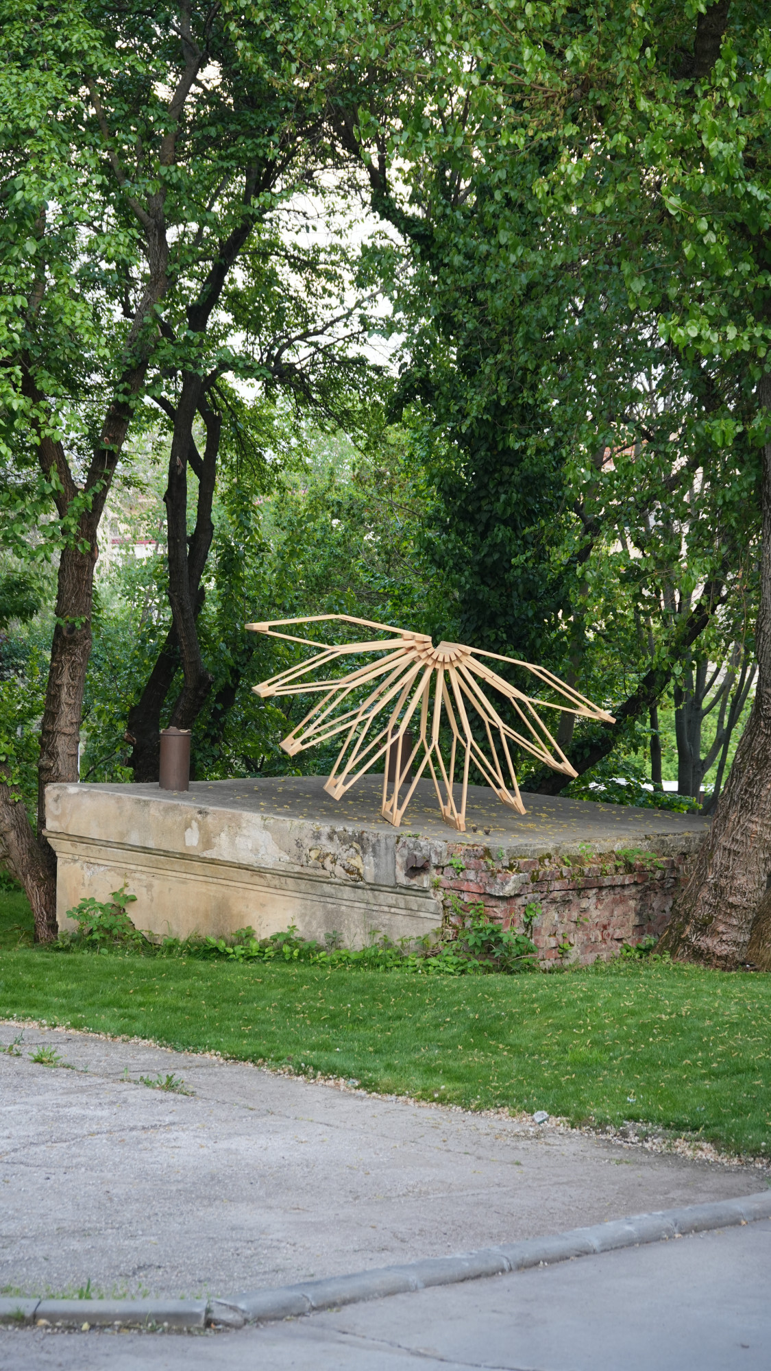 The work ALVA9. The clocksmith is relentless. (2024) is part of a series of pieces titled ALVA9. Their multivalent origin stems from the intersection of memory tied to a place, recycled materials, craftsmanship, architecture, and ecologically degraded urban spaces. All these aspects are brought together under the umbrella of sculpture.
