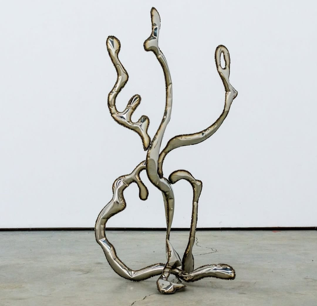 "Anthozoa 2" is a stainless steel sculpture that evokes the organic forms of a coral, reinterpreted through a fluid and rhythmic visual language. Its glossy surface reflects light and surrounding movement, enhancing the impression of vitality and continuous motion.