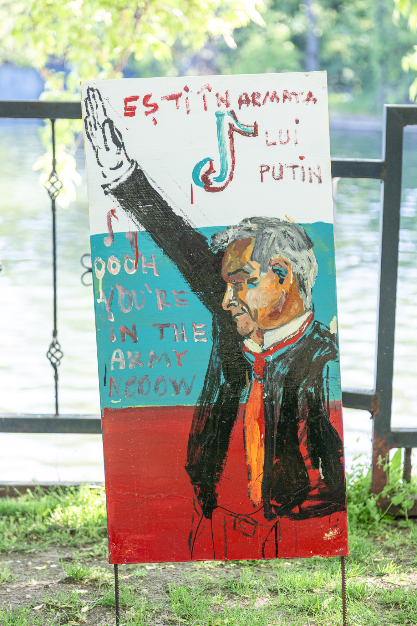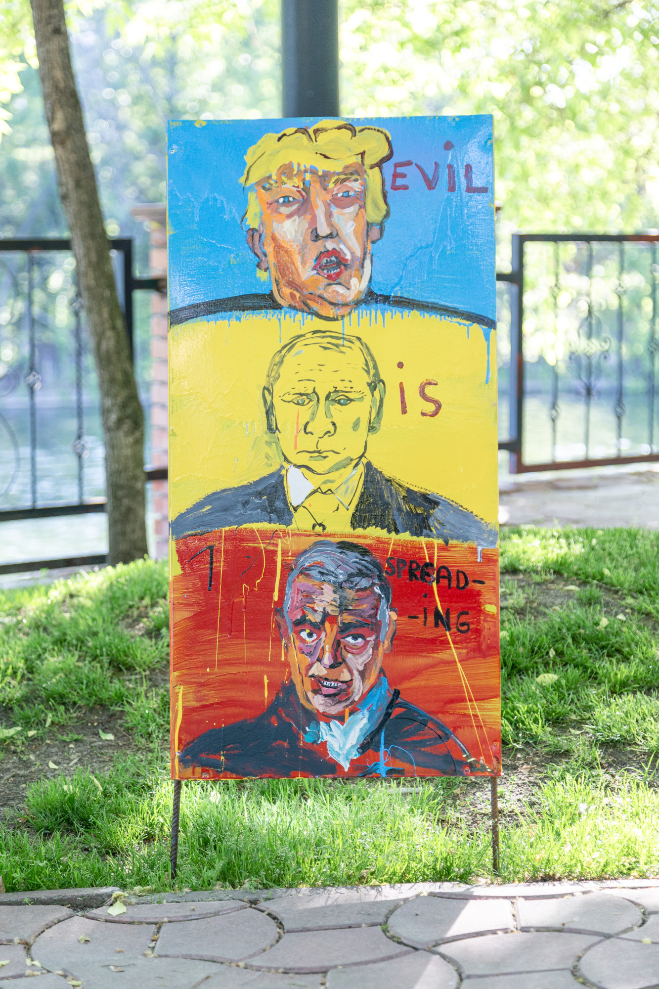 “Antifascist Shields” is a series comprising 4 artworks used at the 15th of March pro-Europe manifest. The artworks depict the stress overload generated by Călin Georgescu’s run for presidency and pro-Russian and fascist stances that have monopolized the artist’s imagination for many months, before Georgescu’s ban. The artist, Deniz, is a sociologist turned strategic planner, chef, and then artist and activist. He is fascinated by color, politics and everyday life. He is a social media addict.