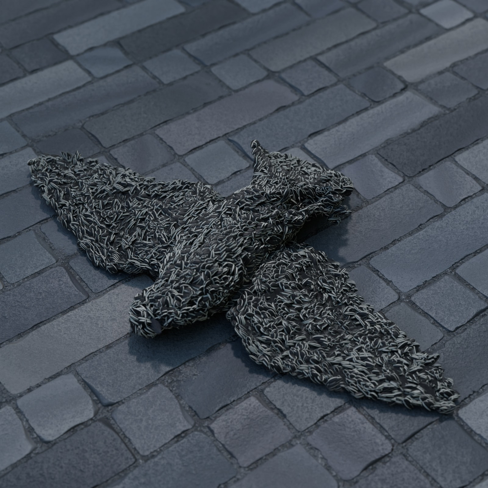 Autocannibalism explores the sacrifice involved in self-reinvention—the way we destroy parts of ourselves to create new ones in the act of self-preservation. The sculptural installation features a papier-mâché pigeon covered in sunflower seeds and placed outdoors, "activated" by real pigeons. As they consume their own likeness, they embody symbolic death, much like the absurdity of endlessly recycling the self, highlighting its inherent fragility.