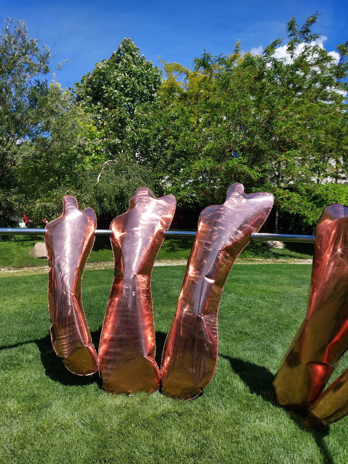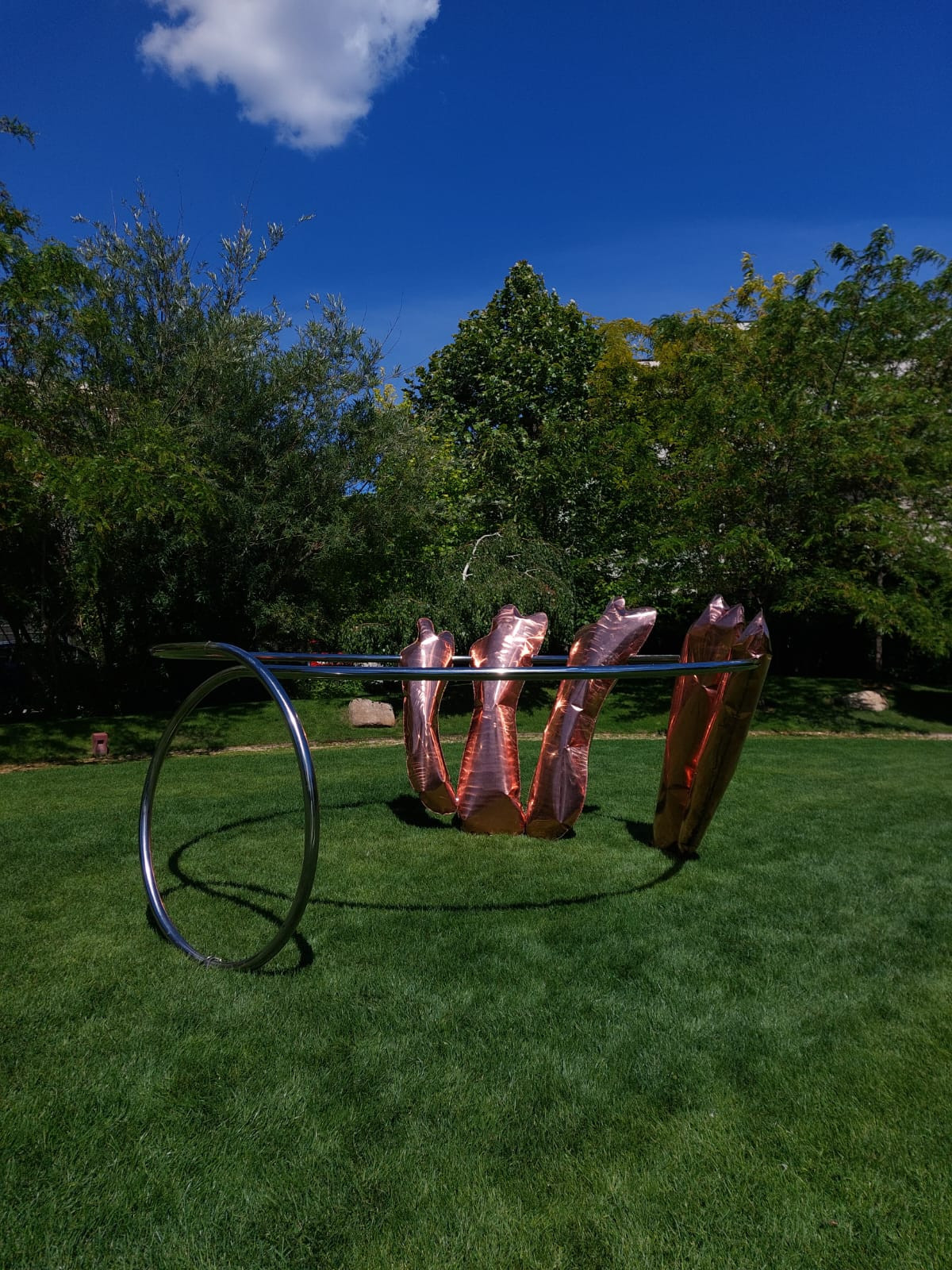Embossed copper and stainless steel; 230 cm height, circle with a diameter of 4m