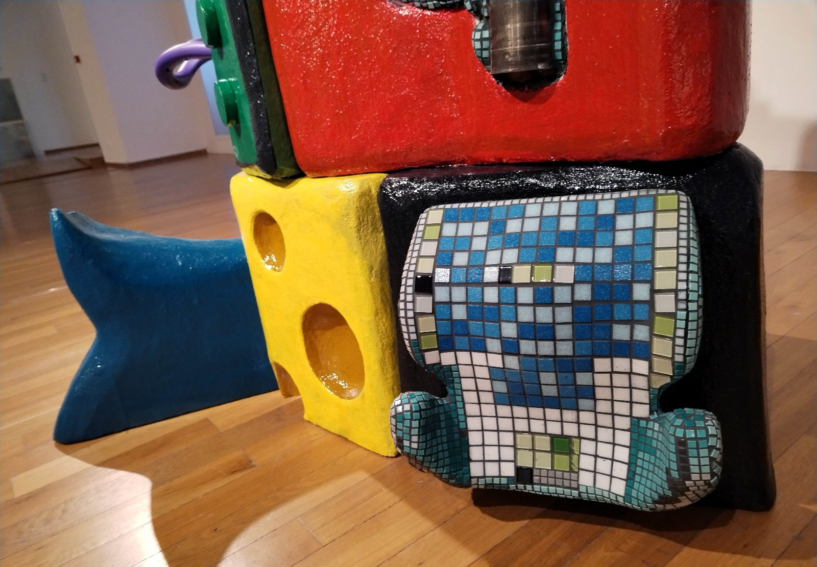 With Mother Ship, Maria Pop creates a hybrid sculpture, positioned at the intersection of playful object and monumental construction, exploring themes of discovery and knowledge through a modular visual language. Composed of colorful modules, the work builds a dynamic and reconfigurable structure, resembling an imaginary vehicle ready to journey into an unknown universe of exploration.