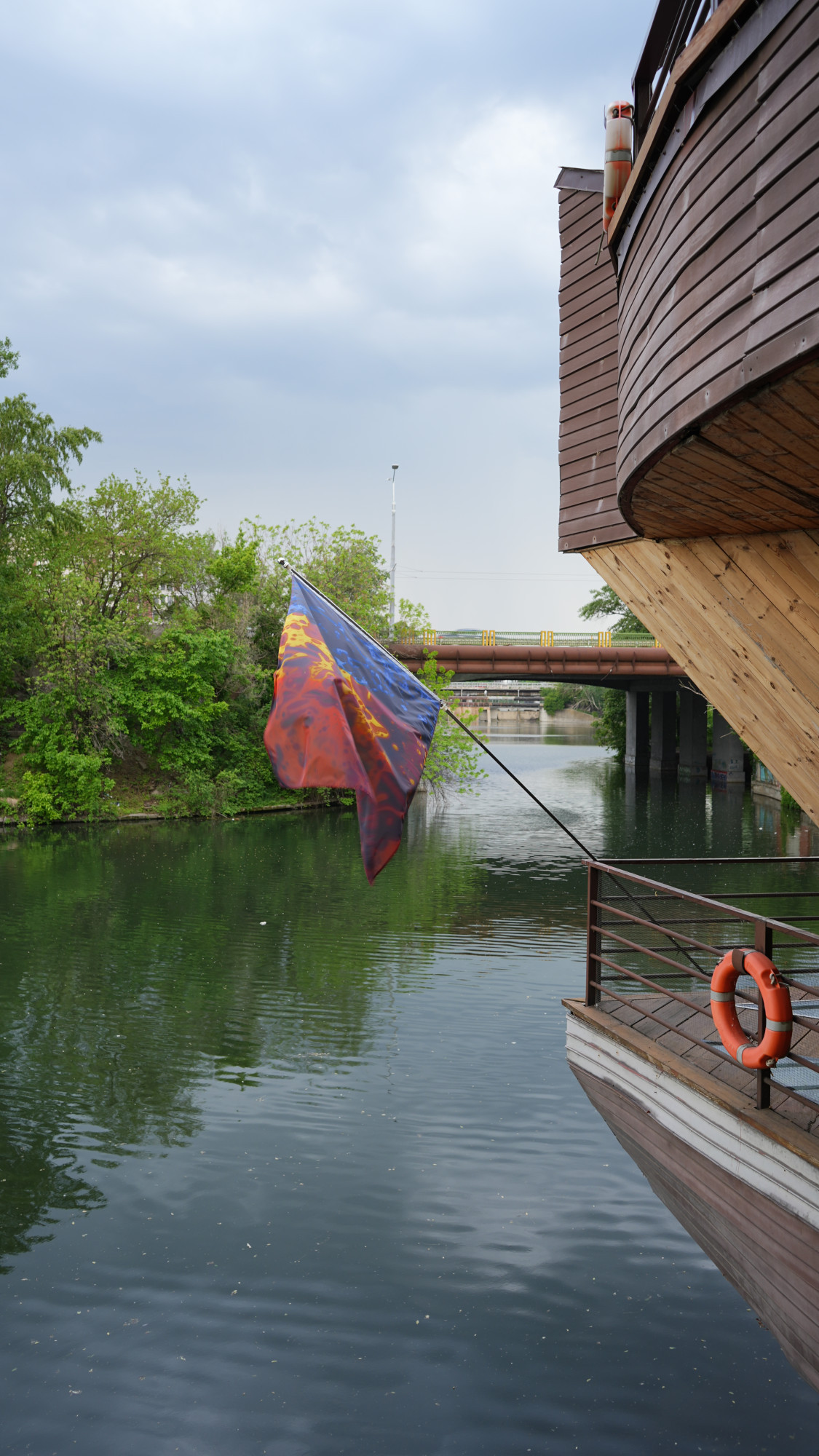 The ''Oil Spill Flag'' bears witness to how states generate profits by handing out licenses to petroleum corporations for extracting fossil fuels, which at the same time causes the destruction of the local environment.