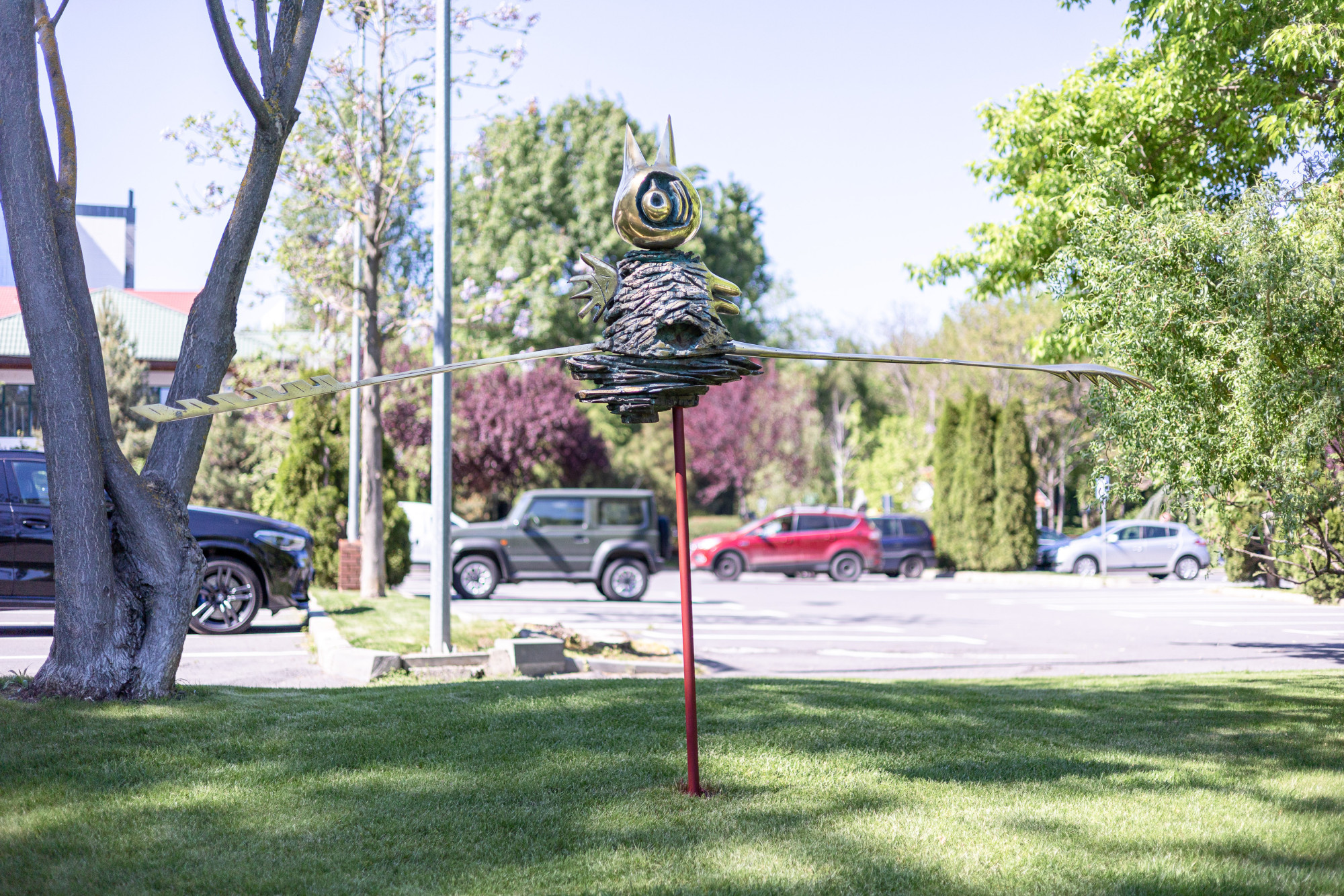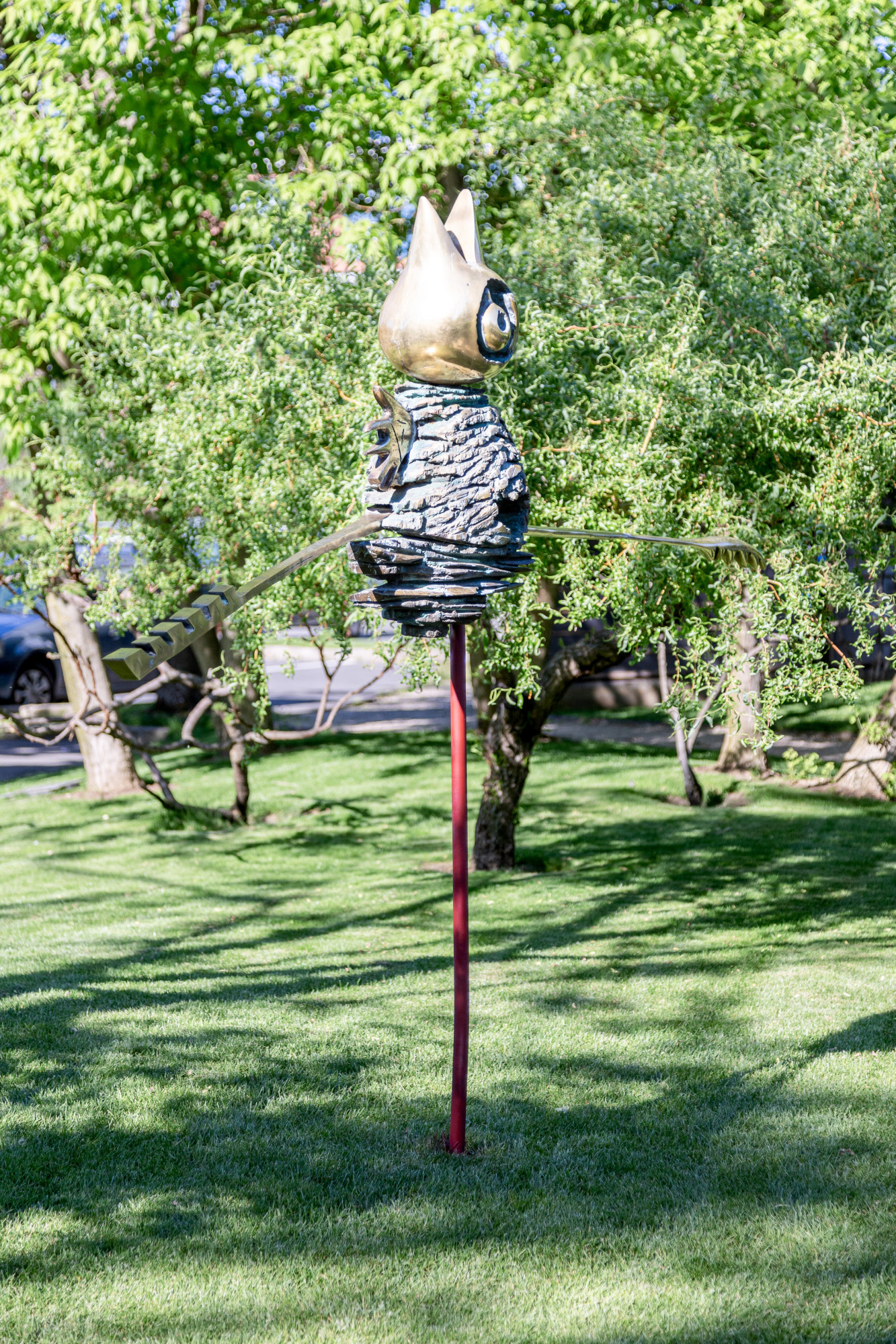 In the zodiac sign of Gemini, two extremes coexist: reason and emotion. In the conflict between reason and emotion, the cry of life is born. The work is positioned so that the bird's eye is at the same level as the human eye.