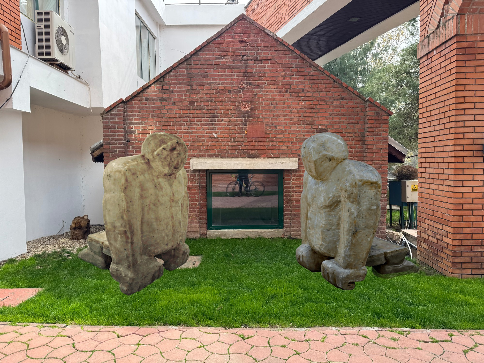 The installation presented at RAD 2025 is a collaboration with Catinca Tăbăcaru Gallery (where the 13th stage - “The Corrective Research Institute” took place in 2024). “The HUMAN Project” presents two humanoids from the 7th stage (2012) a perspective of anthropomorphic primordial chairs which are set as receiver - transmitter of human information.